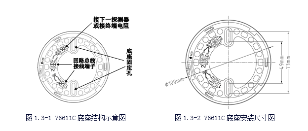 V6611D型探測(cè)器底座與V6611A型探測(cè)器底座通用,是V6611A型探測(cè)器底座的改進(jìn)型。其用于安裝V6621、V6621(Ex)、V6631、V6631(Ex)、V6641等型號(hào)的編碼型火災(zāi)探測(cè)器。