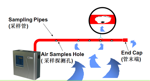 吸氣式感煙火災探測器跟傳統(tǒng)的(點型)煙霧探測器有所不同??諝獠蓸酉到y(tǒng)由在天花板上方或下方每隔幾米平行安裝的管道組成。在每根管子的上面,每隔幾米就鉆有一個小孔,這些小孔很均勻的在天花板上分布,這樣就形成了一組矩陣型的空氣采樣孔。利用探測主機內部抽氣泵所產生的吸力,空氣樣品或煙霧通過這些小孔被吸入管道中并傳送到達探測主機內部的高靈敏度煙霧探測腔檢測空氣樣品中的煙霧顆粒濃度,可實現(xiàn)未現(xiàn)火苗時提前報警,以達到在損失未發(fā)生時就已扼殺在搖籃中。