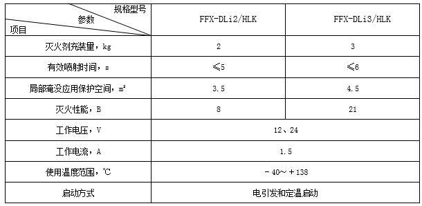車用鋰電池箱D類干粉自動滅火裝置主要技術(shù)參數(shù)