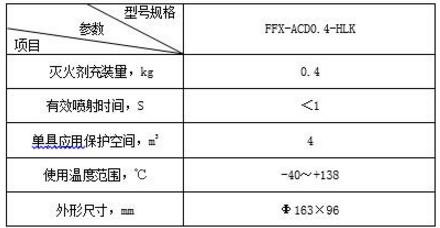 發(fā)動機(jī)艙用超細(xì)干粉自動滅火裝置主要技術(shù)參數(shù)