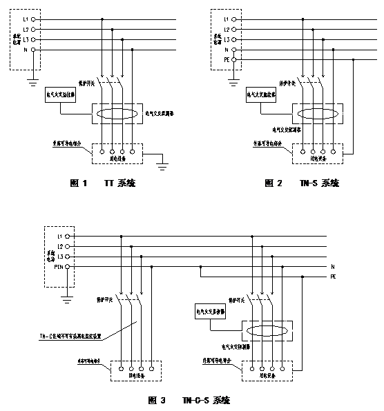 3.4.4TN-C-S接地系統(tǒng)中,電氣火災監(jiān)控系統(tǒng)的剩余電流動作保護只允許使用在PE線與N線分開以后的部分。