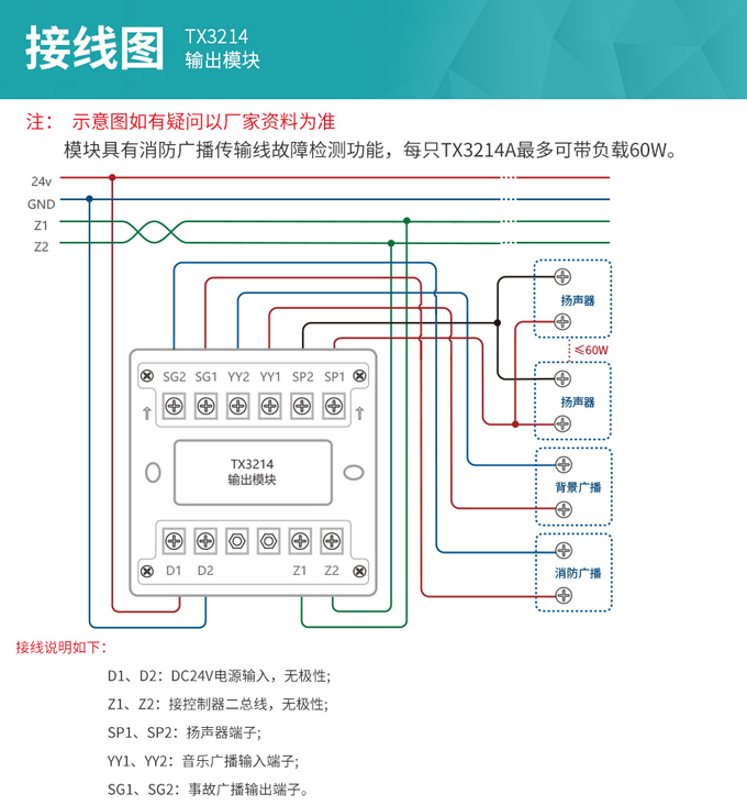 泰和安TX3214輸出模塊接線圖